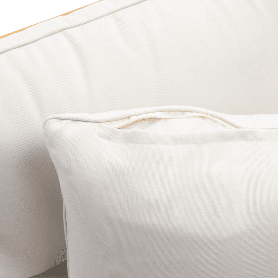 I cuscini in poliestere beige, morbidi e accoglienti, valorizzano ulteriormente lo stile naturale del set.