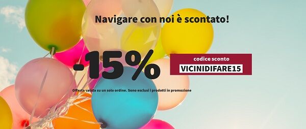 Utilizza il codice VICINIDIFARE15 e approfitta dello sconto del -15% sul tuo ordine online.
